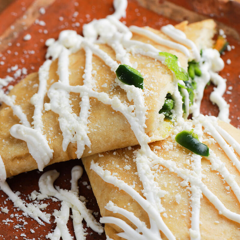 Traditional Mexican quesadillas are made with uncooked handmade tortillas and filled with Oaxacan cheese then fried until golden brown, and later topped with sour cream and queso cotija. When you bite into these traditional quesadillas you will find that the melted cheese and the crunchy fried tortilla go perfectly together